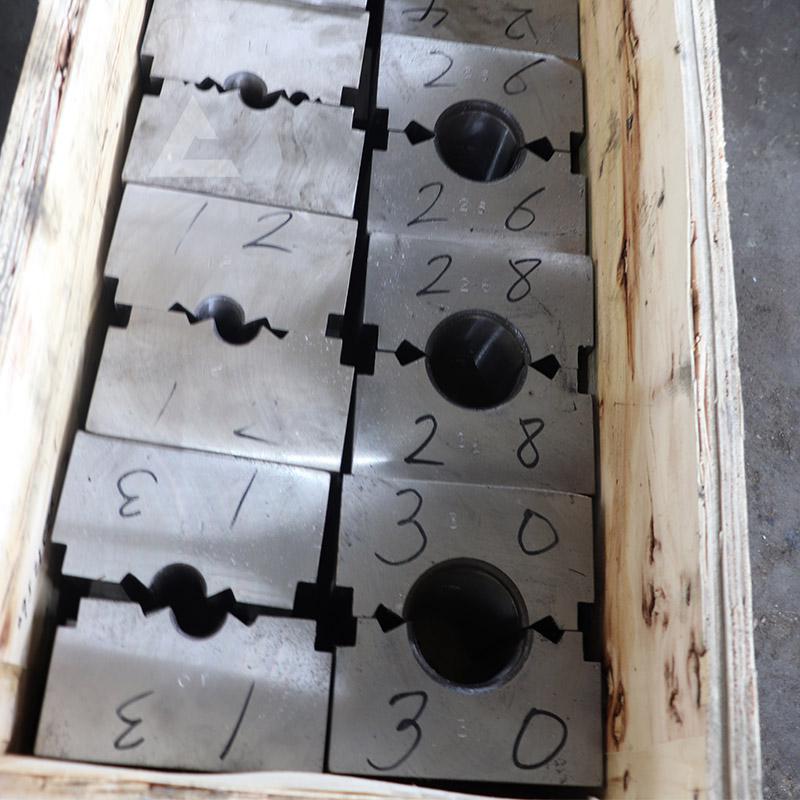 鋼絲繩壓套機是各大港口、五金市場經常會采購的一種設備,用于在鋼絲繩的兩端來壓制鋁套或者是鋼套,加強鋼絲繩的承載能力。那么液壓壓套機在壓制鋼絲繩繩套的時候,需要使用模具來完成壓制的過程。下面就來了解一下鋼絲繩壓套機模具的參數: